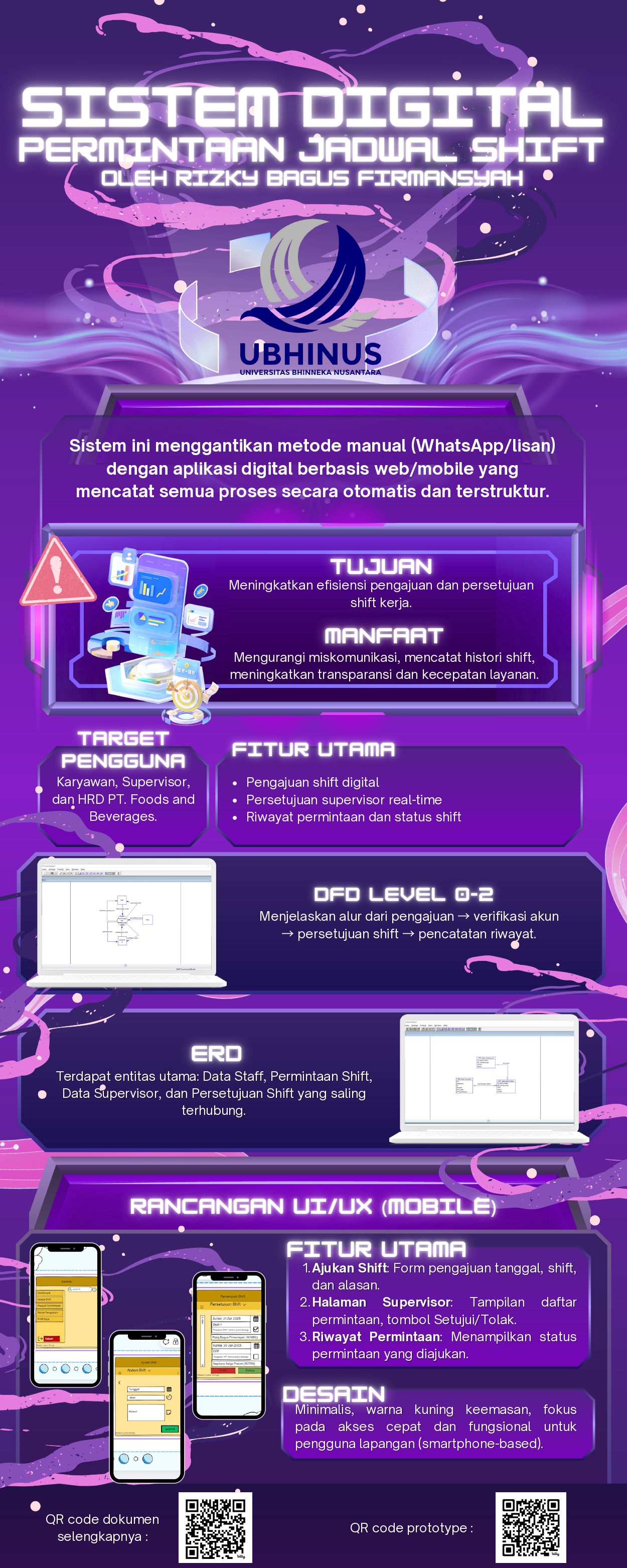 Sistem ini menggantikan metode manual (WhatsApp/lisan) dengan aplikasi digital berbasis mobile yang mencatat semua proses secara otomatis dan terstruktur.